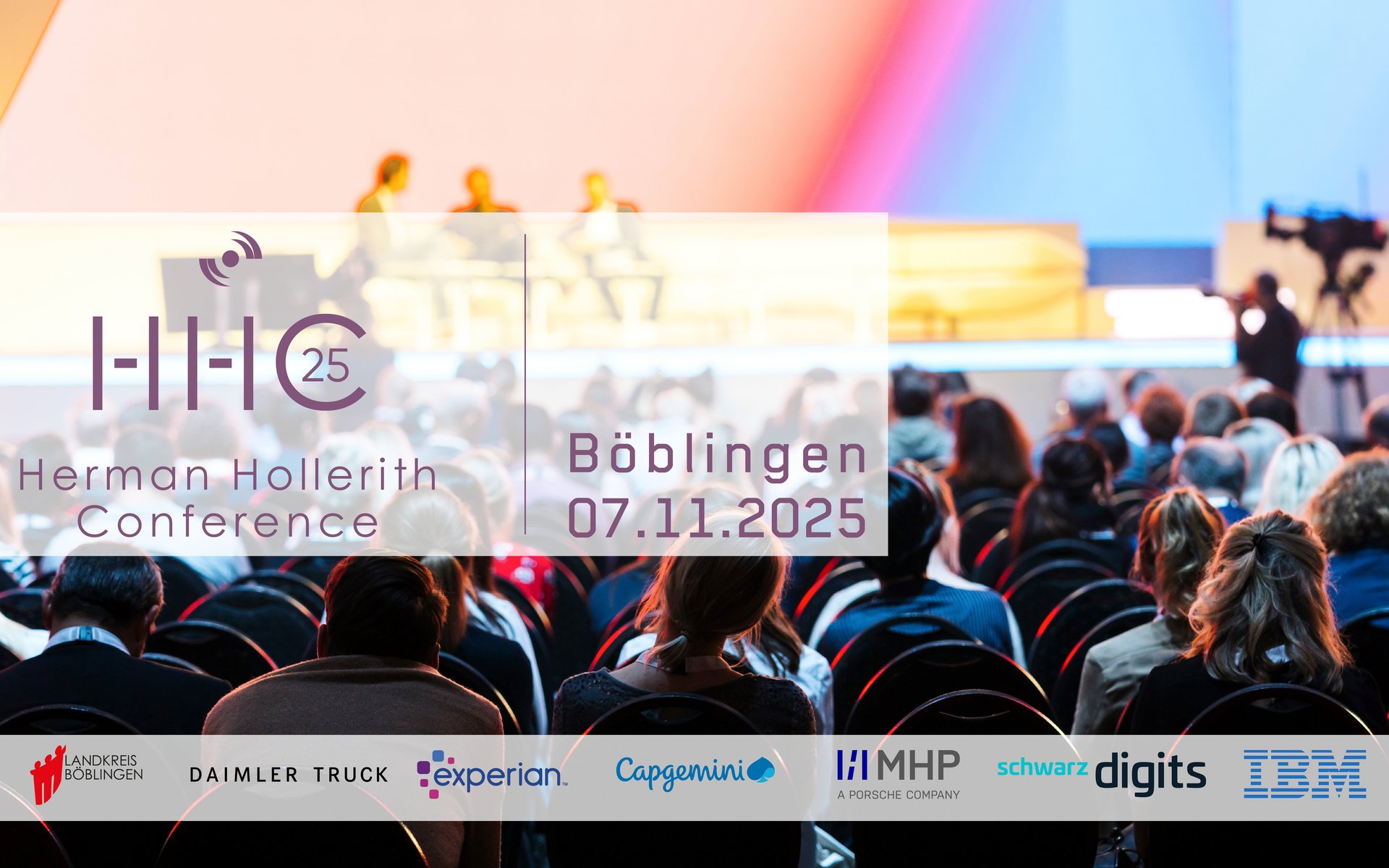 Die Herman Hollerith Conference 2025 findet am 07.11.2025 ab 16:30 Uhr in Böblingen statt. Auf der Konferenz treffen zukunftsweisende Ideen auf reale Anwendungen. Das Ziel ist es, einen jährlichen Austausch zwischen Unternehmen, Wissenschaftlern und Studierenden über Herausforderungen, Chancen und Lösungen durch moderne IT-Technologien zu ermöglichen. Vor, während und nach der Konferenz sorgen ein exklusives Buffet, Live-Musik und ausreichend Raum für Networking - also eine optimale Atmosphäre für interessante Gespräche und einen schönen Abend!