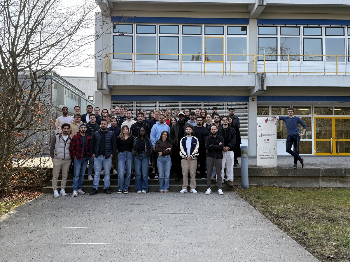 Der neue Sommersemester-Jahrgang des Master-Studiengangs Digital Business Engineering. Über 40 Erstsemester waren zur Begrüßung vor Ort. Oben rechts außen: Studiengangsleiter Prof. Dr. Christian Decker. Foto: Herman Hollerith Zentrum